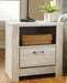 Your bedroom isn’t just a room. It’s a canvas. Express your farmhouse style with this nightstand. Wispy white finish over replicated oak wood grain brightens up the space with charm. Brushed nickel-tone handles with black edging finesse the piece with a bit of shine. Drawer is spacious and lined with faux linen laminate to hold your belongings with care. This clean-lined profile is the perfect authentic foundation for inviting decor.