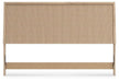 • Headboard panel with textured beige finish that replicates the look of cane